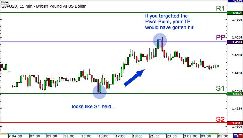 Nếu một cổ phiếu đang giao dịch tại mức giá $100 và có một điểm pivot của $101, ví dụ, các trục cao hơn mức giá hiện tại và hoạt động như một kháng, là một nhà đầu tư quyền chọn nhị phân, bạn, hãy biết rằng thị trường đầu tư nhiều khả năng sẽ giảm hơn để vượt lên trên mức kháng cự tạo bởi các điểm Pivot. Vì vậy, bạn có thể đầu tư vào một quyền chọn nhị phân dự đoán giá sẽ giảm, hoặc sử dụng các yếu tố khác của phân tích kỹ thuật, chẳng hạn như các chỉ số kỹ thuật hoặc hình nến, để tìm kiếm dấu hiệu bổ sung của một thay đổi hoàn toàn.